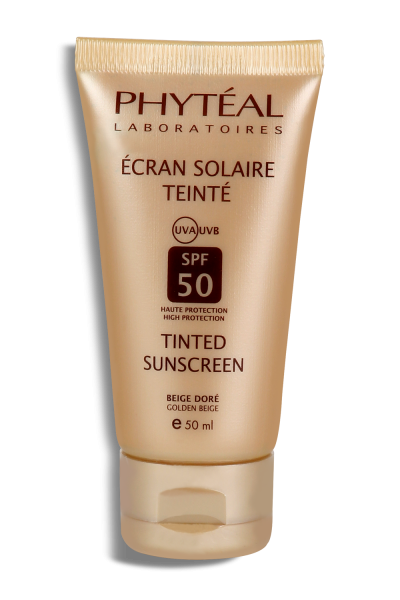 PHYTÉAL écran solaire teinté beige doré SPF 50 UVA combine une protection solaire, un fond de teint et une crème hydratante. Hypoallergénique, sans parabène, résistant à l’eau, aux frottements et à la transpiration, il ne colle pas et ne présente pas d’effet masque.